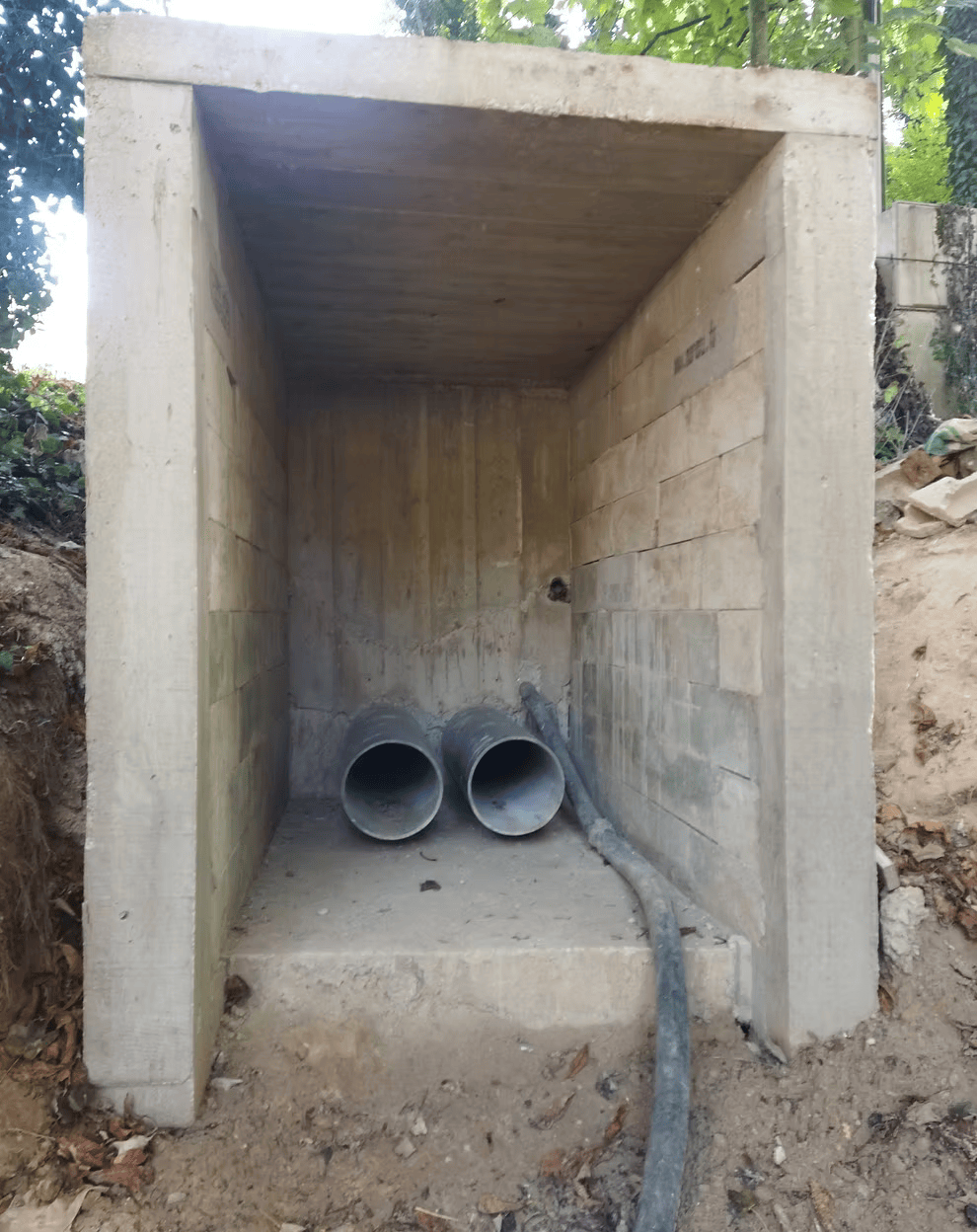 Nos équipes ont mis en œuvre des solutions adaptées, en utilisant des matériaux robustes et durables, tout en veillant à respecter la configuration naturelle du terrain. Ce travail minutieux a permis de consolider l’entrée d’eau, d’assurer la continuité du débit et de prévenir tout risque d’érosion ou de dégradation future.